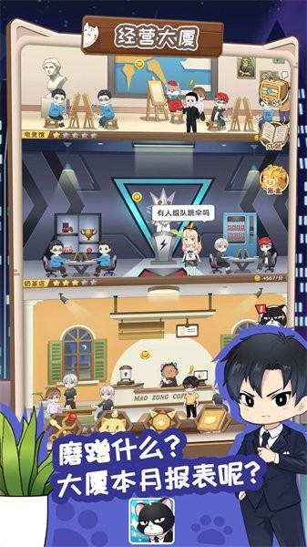 猫总大厦游戏是非常好玩的一款模拟经营类型的手游,在这里玩家们需要经营着自己的大厦,建造各种各样的店铺让自己能够赚到非常多的钱来不断的解锁更多的新道具和店铺,让自己的经营规模不断扩大,超级的好玩。