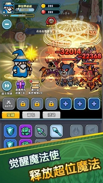 这是一款以异世界穿越爽文为背景的挂机放置游戏,玩家扮演魔法使,召唤装备和伙伴,挂机打boss探索异世界。