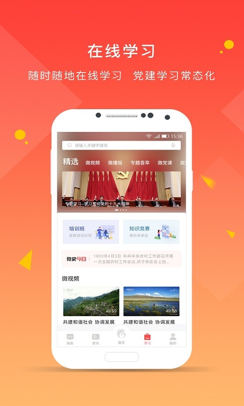 先锋党建官方版是一款提供党建党务学习办公的应用软件。涵盖大量的党建资讯内容,实时更新相关政策,智能精选推送,还提供培训班、知识竞赛等服务,全面学习贯彻十九大精神,支持在线学习分享感悟,促进思想交流进步,考核、支部管理随时查看,高效处理!