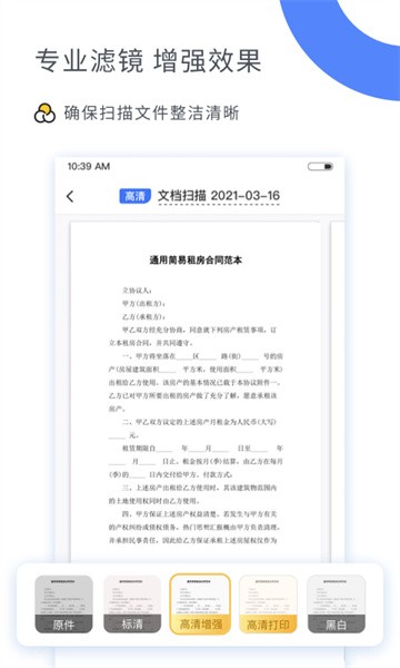 文档扫描管理工具,自动切除多余背景边框,多种滤镜自动优化,快速生成高清扫描件,即时分享到邮件、微信、qq等,多设备查阅管理。
