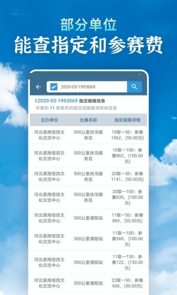 5.在线可以查询插组情况,可以对信鸽主人不限次数的查询