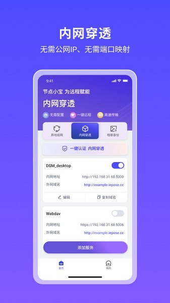 最让我觉得方便的是它的点对点直连技术,不用额外购买服务器就能实现快速连接,而且传输速率直接取决于宽带速度,这点特别实在。对于需要高效管理内网设备的人来说,节点小宝绝对是个好帮手。