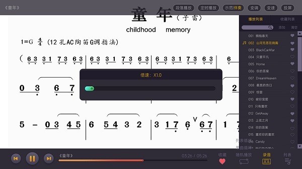 5、电子乐谱游标与音乐播放完全同步,无论第几页、第几行。