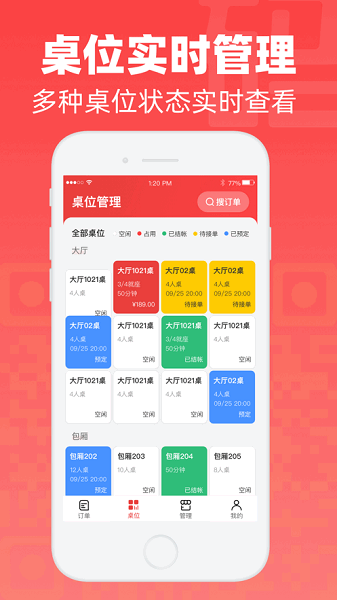2、桌位实时管理,多种桌位状态实时查看
