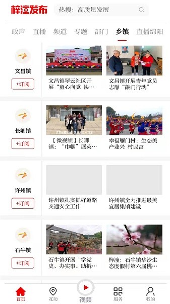 特色方面,梓潼发布提供直播和视频资源,这对喜欢看新闻的人来说太棒了。搜索功能也很方便,想找啥直接搜,节省时间。生活服务板块也很实用,各种动态资讯一网打尽。