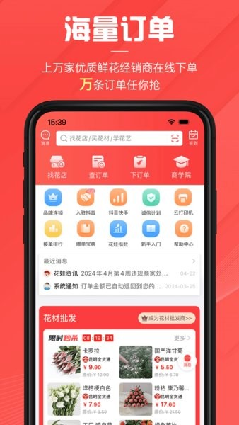 上万家优质鲜花经销商在线下单,万条订单任你抢。