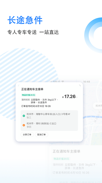 主要提供顺风车、长途急件、送宠物,帮忙办事
