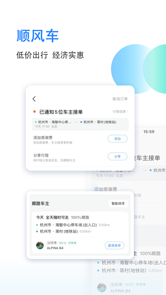 这个软件的功能挺多的,除了顺风车和长途拼车,还能帮忙办事、送宠物什么的,感觉很贴心。我记得有一次我要回家过年,用滴答出行拼车真的特别便宜,还很快找到了司机,整个过程都很顺利。
