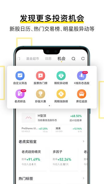 发现更多投资机会,新股日历、热门交易榜、明星股异动等