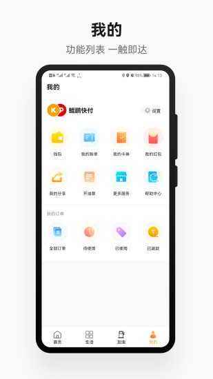 鲲鹏快付,为中石油加油卡客户打造的线上支付app,使用app用户可便捷为自己的中石油加油卡进行充值支付,软件支持支付后的发票开具,使用十分方便,软件支持支付种类丰富,有需要的用户可以下载使用!