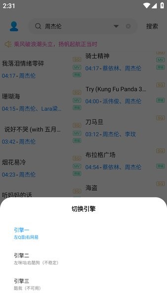涵盖全网各大平台的免费音乐,支持通过关键词、歌曲名、歌手名等搜索方式查找音乐。