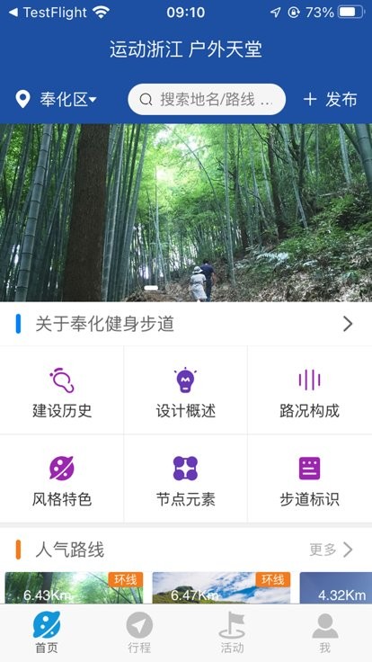 环浙步道户外旅游运动神器,支持浙江省各类景区、户外运动场所的信息查询和服务;