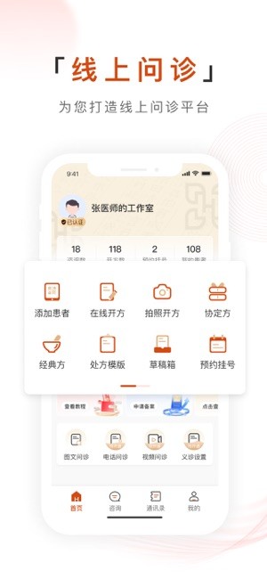百姓中医慧康堂最新版是一款面向中医医生提供线上问诊医疗服务的应平台,打造线上诊室,可以随时安排时间进行接诊,自由设置,支持图文结合沟通交流,了解患者信息和病情,支持在线开方、远程会诊,分类管理患者,提高工作效率!