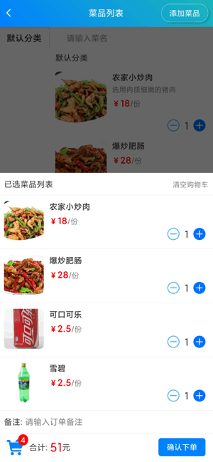 一款简单便捷的点餐下单APP,方便店家对餐馆进行数字化管理,功能包括菜品管理、下单管理、桌号管理、客户管理、员工管理、打印管理、统计管理等。