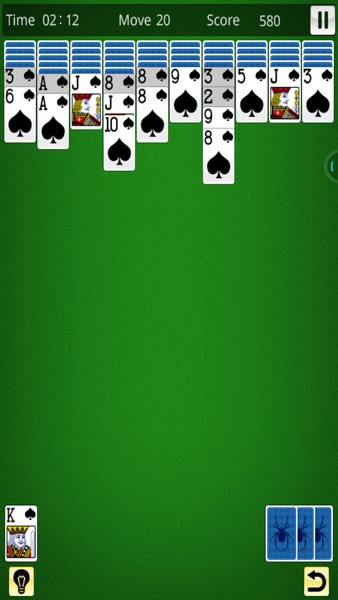 蜘蛛王纸牌游戏是玩法经典实用的小游戏,打发时间非常有趣,也是电脑上经典蜘蛛纸牌游戏的玩法,让大家可以在手机上重新回味快乐的时光,在无尽的快乐冒险中相守全新的蜘蛛纸牌游戏!