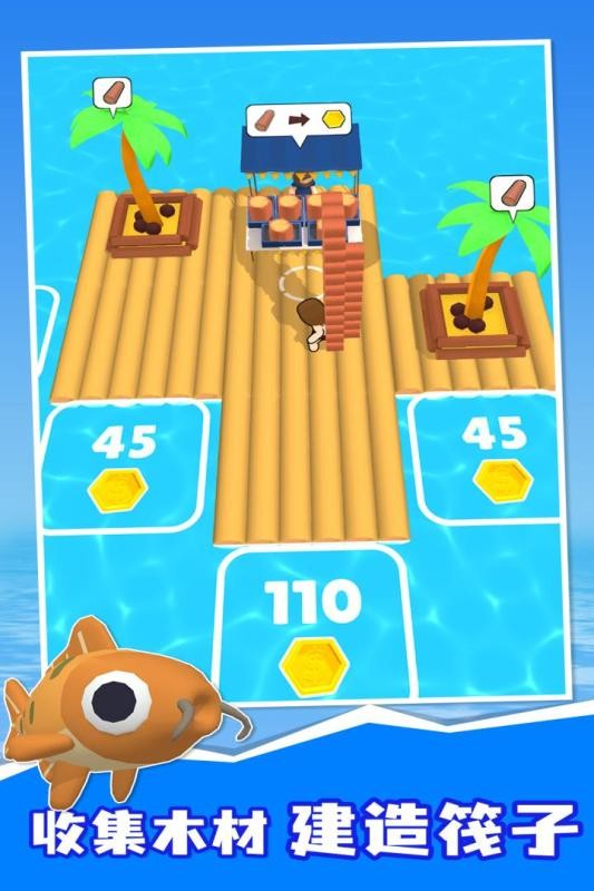 《木筏人生》手机版是一款冒险求生的游戏,画面精致,玩法简单又有趣,适合各种年龄段的人玩。游戏里你需要在一个木筏上生存,收集木材建造更大的木筏和岛屿,还要小心鲨鱼的攻击。一开始你可能只是一个普通人,但通过努力,你可以学到很多技能,比如造船、打猎和潜水。这些都能帮助你在海上生存下去。