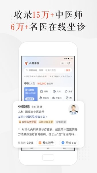 小鹿签约三甲医院医生达6+万,根据病情智能推荐医生,支持图文和电话问诊,中医调理身体看病就用小鹿中医。