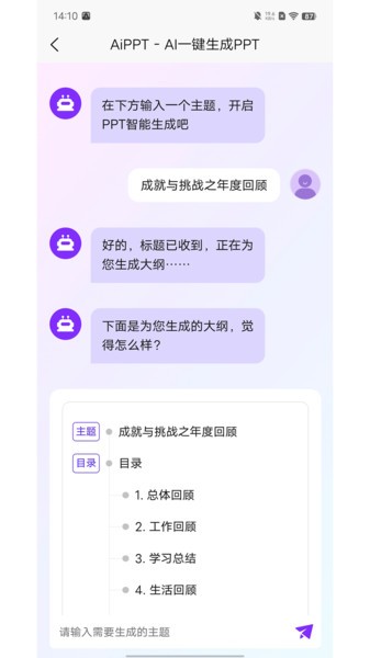 aippt自动生成工具是提供aippt制作生成的应用工具,功能强大实用,可以根据需要自由输入ppt主题,一键开始生成,还提供不同主题选择,带来丰富的模板素材,随机匹配生成,在线预览查看,满足个性化需求,适用于不同的场景!