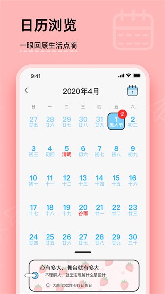 1、记录功能,大家可以记录自己的想法,也可以记住一些重要的事情和日期。