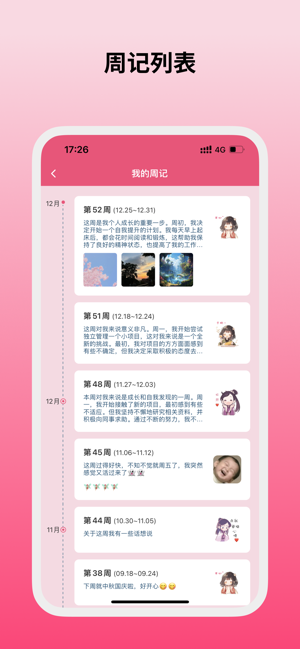 每周一次的周记,是您回顾过去、总结收获的宝贵机会。在《纯纯周记》中,编写周记变得简单而愉悦。我们为您提供智能导入本周所有任务的功能,帮助您深入分析每个任务的进展和成果。此外,我们还准备了周记表情,让您随心记录情绪变化,真实反映周内的心情起伏。周记不仅是记录工具,更是促进个人成长的有力支持。