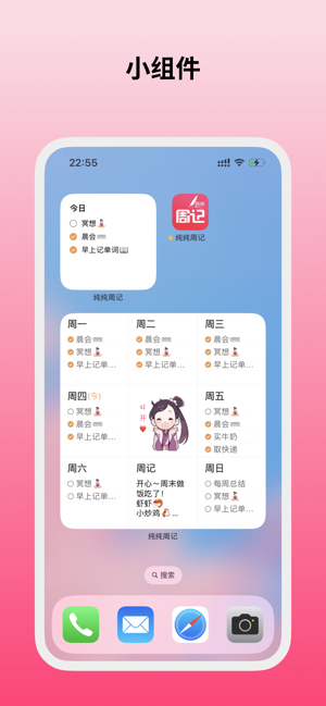 纯纯周记最新版是提供周记记录计划服务的应用工具,可以用来计划日程,管理时间,每日打卡,提供备忘录功能,随时随地记录每周事项任务,了解管理任务,掌握实时进度,还支持视图呈现,看起来一目了然,没有广告打扰,更提供桌面小组件使用,操作简单方便!