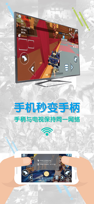 电玩宝最新版支持与手游同服同账号,为每款游戏定制专属手柄,并通过手机操控实现无线游戏体验。连接方法也很简单:下载APP、确保手机和电视在同一个WiFi下,然后扫描并连接电视即可。