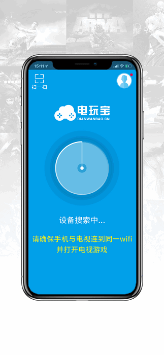3、打开app与电视游戏,接着扫描、连接电视即可