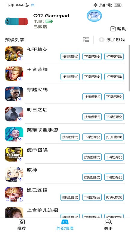 蓝牙游戏手柄最新版通过app与设备的连接就能为你带来一个更为优质的游戏操作体验,支持多个品牌的蓝牙手柄。在平时我们使用游戏手柄的时候如果遇到连接上的问题,那么久可以借助该软件来帮助这一问题,有了手柄之后,操作体验更上层!