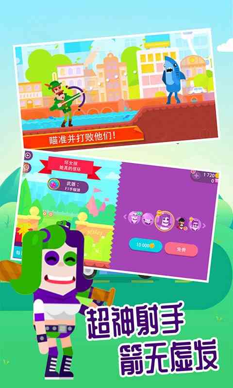 超神弓箭手射击无广告版是一款射箭类型的手机游戏,采用趣味卡通画面设计呈现,主要围绕不同角色之间的1对1射箭对决展开。不断解锁新的角色,挑战更多的主题场景,还提供多种游戏模式可以体验,不断解锁更多宝箱奖励,玩起来简单易上手,充满无限乐趣!