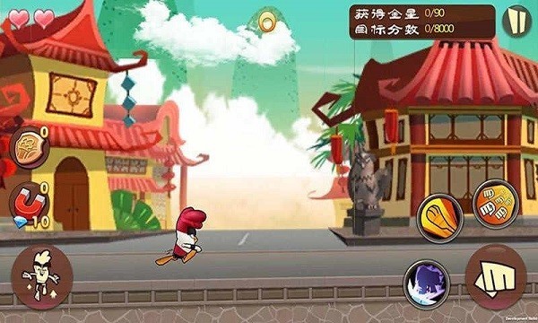 -- 功夫鸡之勇往直前的玩法就是传统的跑酷玩法,加入了一些RPG的元素,例如说我们可以进行对战,我们还能够在跑酷的过程中攻击敌人,这个更类似很早之前的超级玛丽。最关键的时候我们还可以升级,升级提升自己的属性,让自己能够更快的消灭敌人。