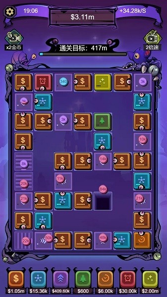 这是一个益智休闲放置游戏,帮助可爱的小怪兽们规划并建造一个完美的自动硬币生产线。游戏中,玩家需要组合和升级方块,探索许多协同效应,并解锁多个特殊功能的方块。设置你的装配线,然后看着硬币滚滚而来。