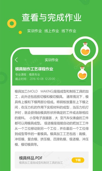 查看与完成作业,实训作业,线上作业,线下作业随时查看并完成;