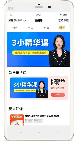 精选全国优秀教练精品在线课程,内容丰富,风格各异,根据喜好自由选择,让驾考更有温度,助力学员快速通关。
