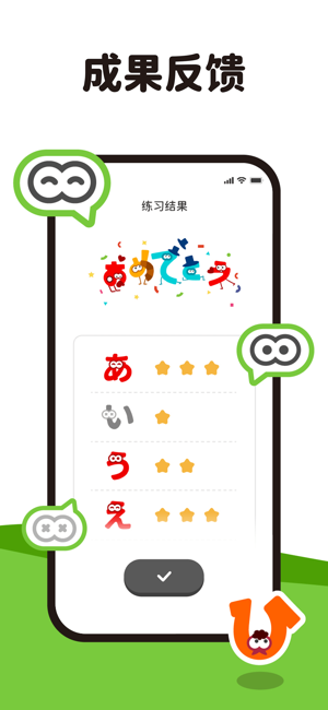 APP内包含了每个假名的书写顺序和笔画指导,大家可以通过跟随屏幕上的动画笔触来学习如何正确书写。