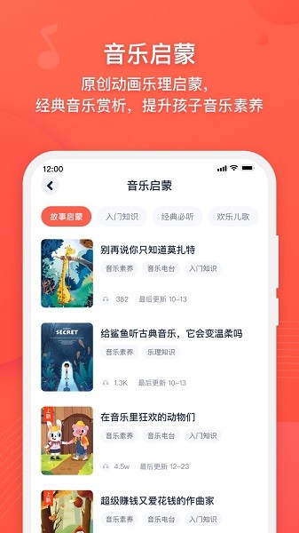 3、很多不同的音乐故事都可以在线观看,帮助儿童进行音乐学习,培养乐感;