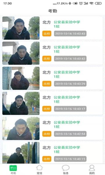 2、门禁考勤。学生刷脸通过门禁闸机进出校门,家长实时收到通知提醒,并可查看考勤图片和记录。