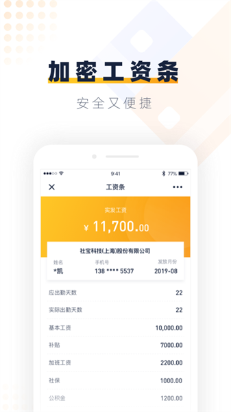加密工资条-安全又便捷的工资条。公司HR发送工资条后立即推送通知,可及时查看比较,避免错漏。