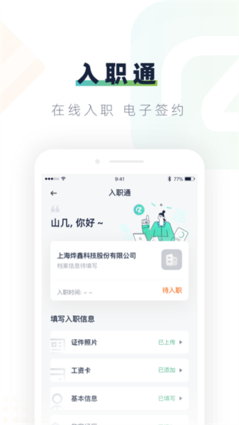 云入职,全程无接触完成入职资料提交。在线签约,提供受法律保护的电子合同。
