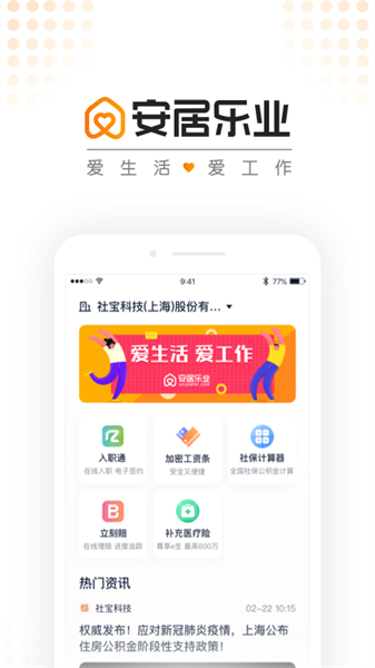 安居乐业软件是一款专为企业员工和自由职业者而打造的综合服务平台,提供入职、查询、资讯、法律等多方面的服务,围绕你的工作场景提供最贴心的帮助.感兴趣的朋友可以来下载使用.