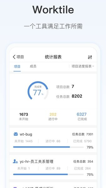 worktile手机版是一款为企业打造的线上移动办公管理软件,支持项目与任务管理、目标管理、统计报表、即时沟通与文件分享等功能,带来一站式便利办公服务,随时随时协同合作,提高工作效率,日程安排、任务统计更加便捷简单!