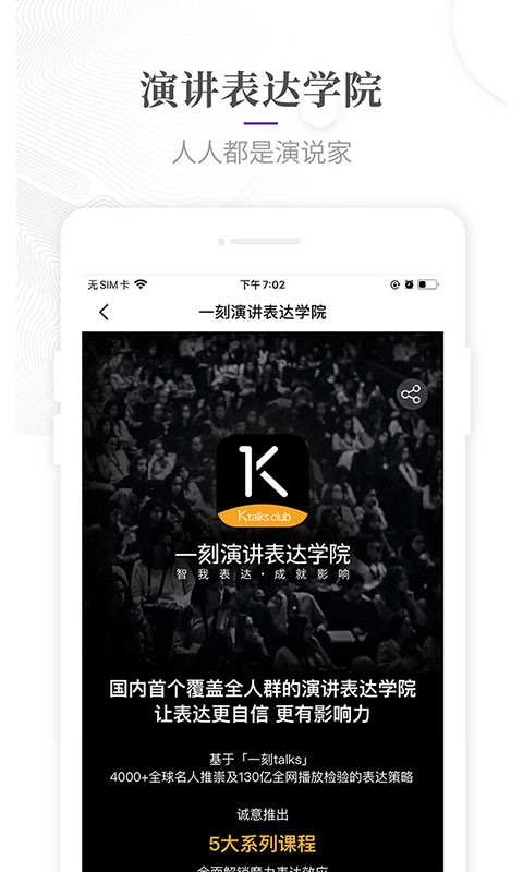 一刻Talks软件是提供演讲学习分享的应用平台,拥有大量直播课程,聚合全球优质名咖,在线直播演讲,提供超级路演、讲者智库、kk科普、灵感金句等功能服务,覆盖不同的专业领域,大量干货助力提升新认知,勇敢分享表达,给你不一样的精彩,发现世界更多可能!