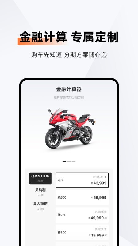 钱江智行是一款由钱江摩托推出的智能摩托车车联网应用,提供了一站式服务,包括车型选择、资讯动态推送以及远程车辆控制等功能。它不仅能让你随时查看爱车状态,还能通过APP实现防盗、寻车、快拍和导航投屏等实用操作。此外,App还设有车友社区、品牌商城、精美周边产品专区以及金融分期购车服务,满足车主的多样化需求。