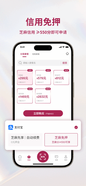 用户的芝麻信用大于或等于550分即可办理用信誉进行免押支付