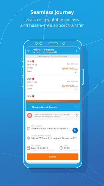 使用我们用户友好的旅游应用程序改善您的旅行体验,该应用程序有英语、印尼语、马来语、泰语和越南语版本。轻松预订机票或预订酒店,并使用信用卡、银行转账或各种支付点方便地支付。