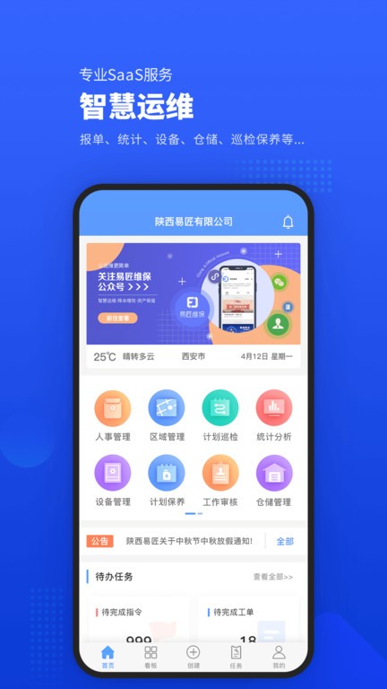 易匠维保app软件作为维保工具,能够在手机上进行人事、设备、仓储和区域管理,支持在线创建工单,提供了语音记录服务,方便又快捷,有非常详细的报单统计分析,每个工单的进度都能在此查看。