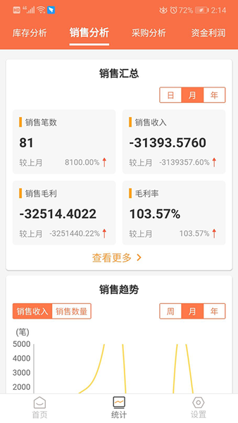 销售数据、营业数据、收支数据都能统计,便于查看;