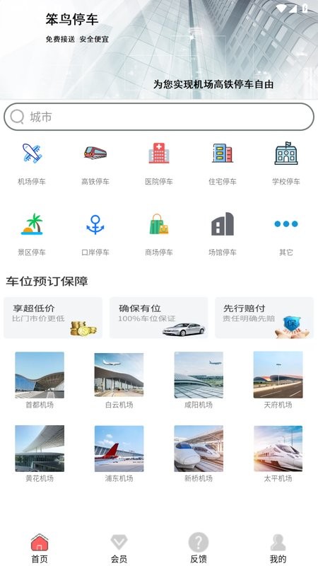 这个笨鸟停车app看起来挺实用的,特别是在解决停车难题方面。它覆盖了各种场所,比如机场、医院、高铁站等等,还能在线预订车位,价格优惠,保障停车位,感觉很方便。特别是会员服务里的先行赔付和及时反馈,让停车更省心。