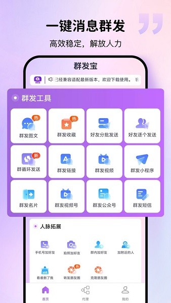 高效触达:一键群发功能可快速将消息、图片、链接等内容发送给多个微信好友或群组,适用于重要通知、活动推广、节日祝福等场景。