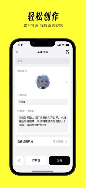 在app里创建和编辑,设计自己的角色,同时可以分享到社区共同交流创作。