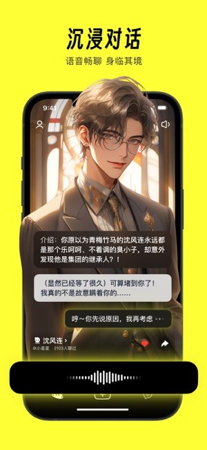 -- 您可以通过语音畅聊的方式与AI角色进行深度交流,从而享受真实而自然的对话体验。